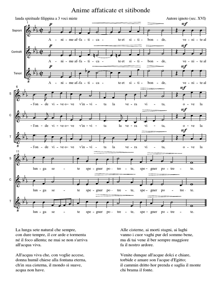 All'acqua viva che, con voglie accese, Venite dunque all'acque dolci e chiare,