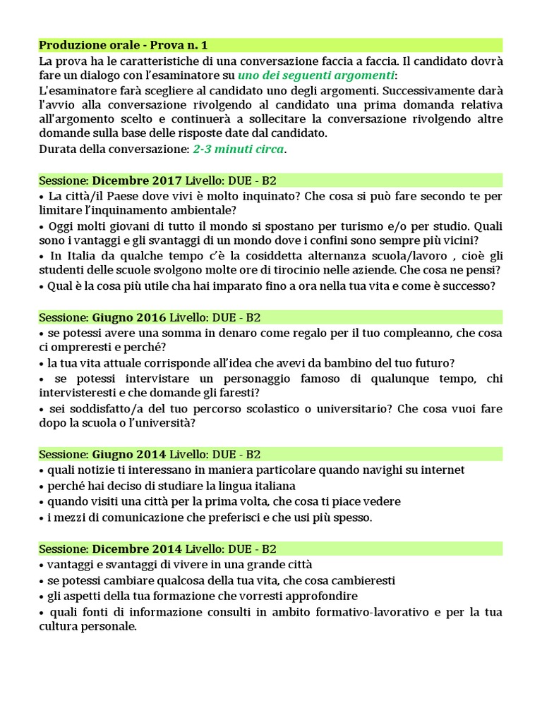 Sessione: Dicembre 2017 Livello: DUE - B2