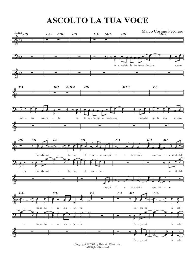 il cre-a - to la tua vo - ce a - scol - te - rà, a - scol-te - rà la tua vo-