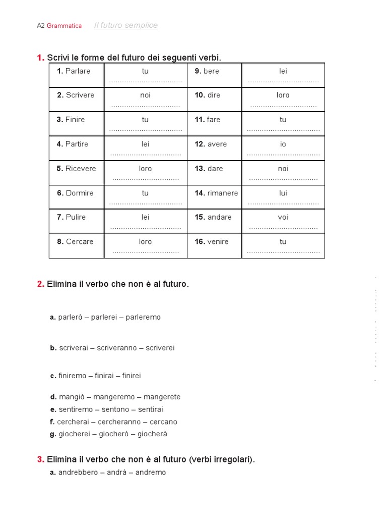 1. Scrivi le forme del futuro dei seguenti verbi.