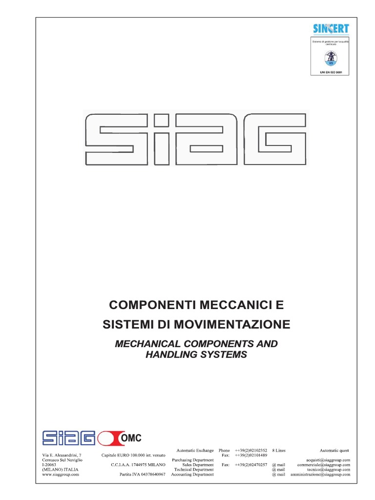 I prodotti SIAG sono coperti da garanzia integrale SIAG products are covered by integral guarantee