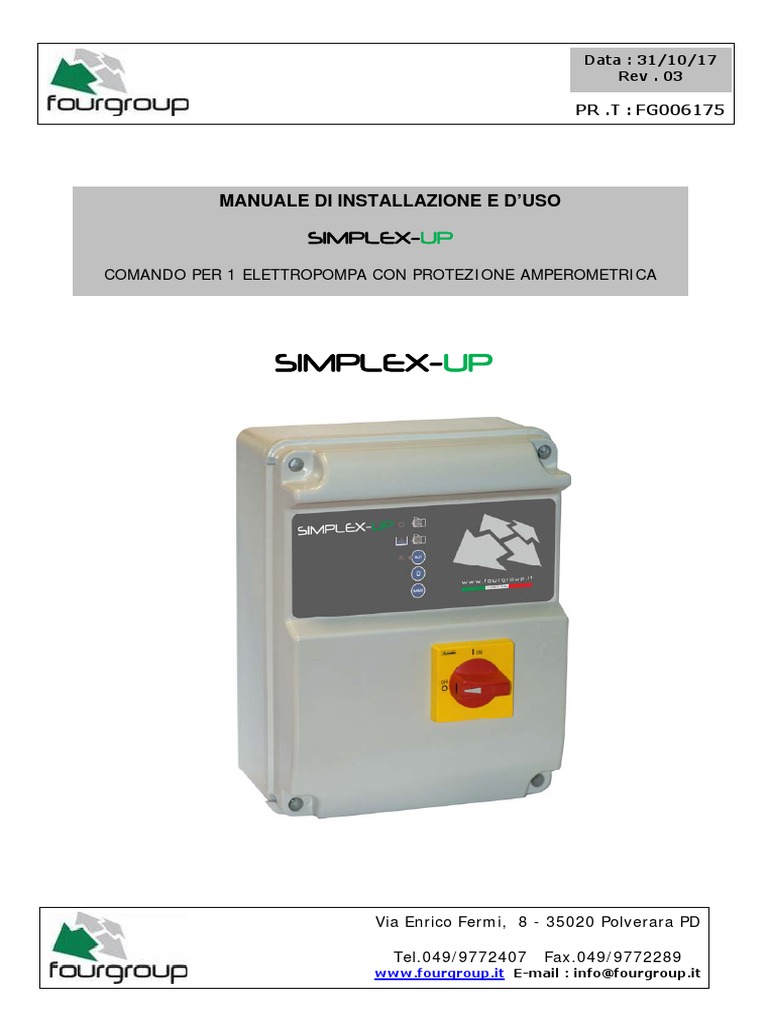 Il SIMPLEX-UP è particolarmente adatto per il comando di un motore od elettropompa in