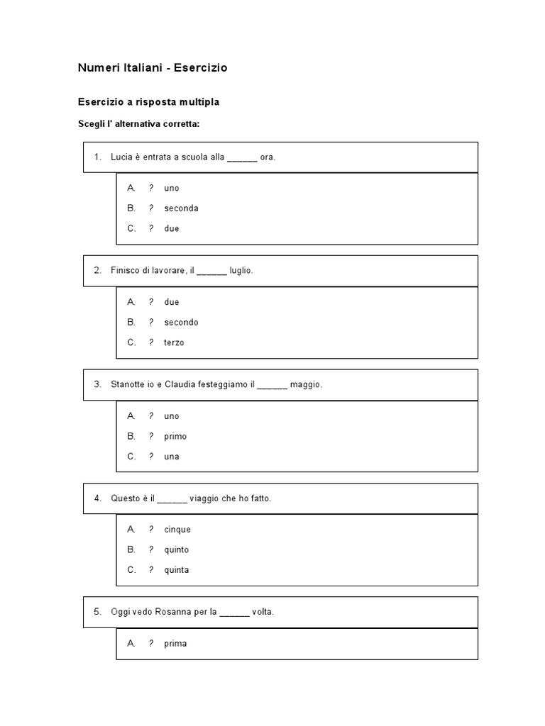 6. Sebastiano va in palestra ____ volte alla settimana.