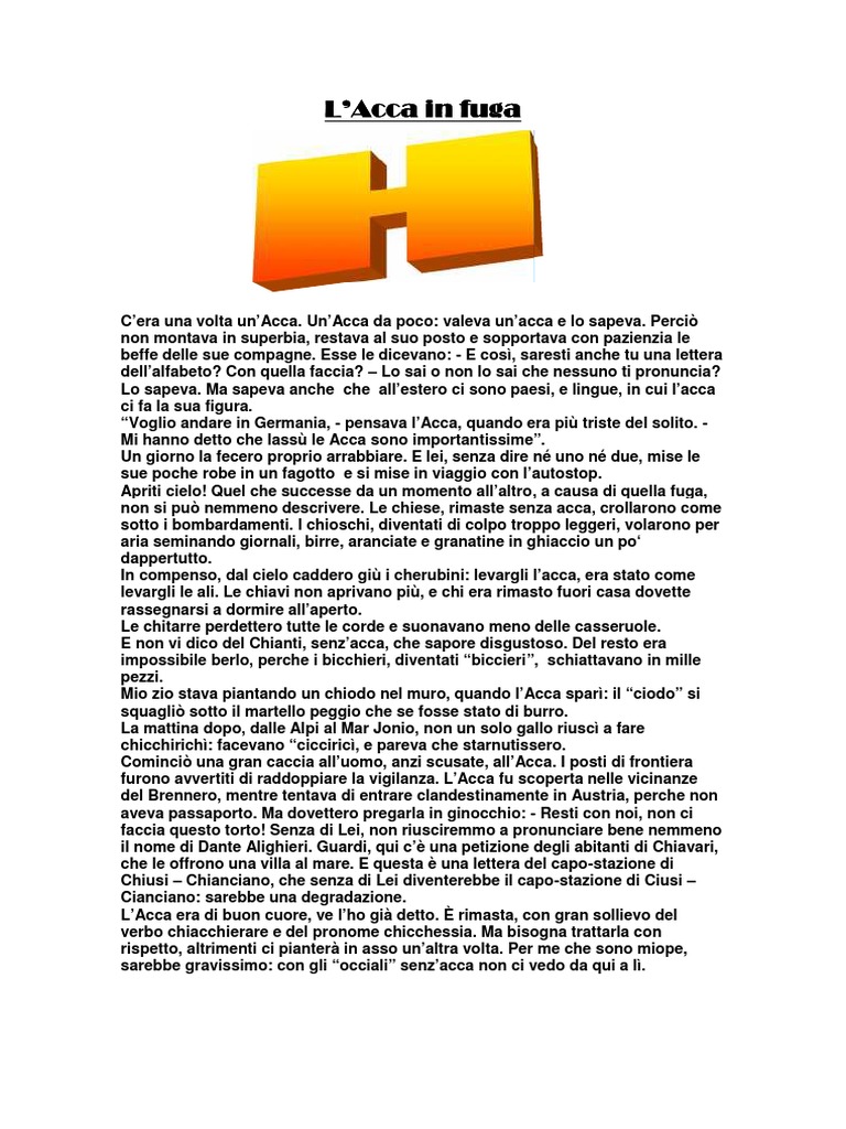 C’era una volta un’Acca. Un’Acca da poco: valeva un’acca e lo sapeva. Perciò