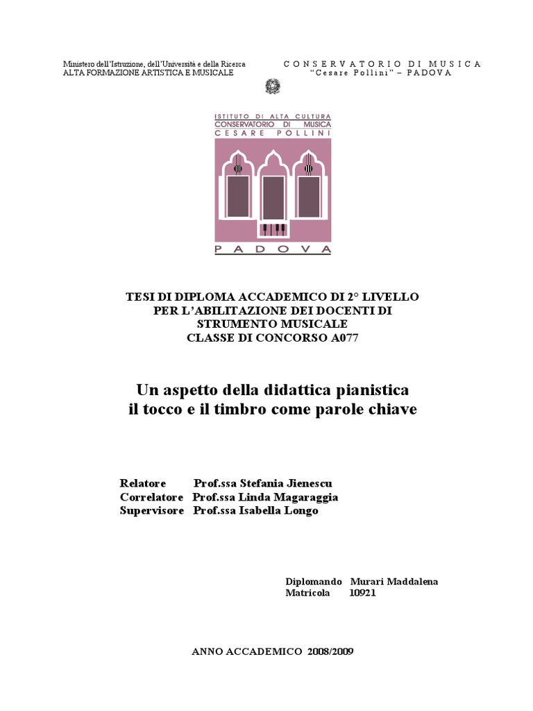 direttive Ministeriali, in quanto si ritiene che l’aspetto della differenziazione del tocco sia un