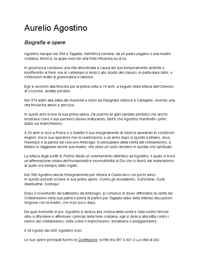 Il pensiero agostiniano prende le radici, anzitutto, dai neoplatonici, in particolare di Plotino,