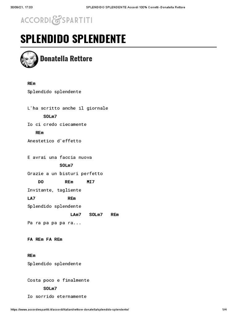 30/09/21, 17:03 SPLENDIDO SPLENDENTE Accordi 100% Corretti -Donatella Rettore
