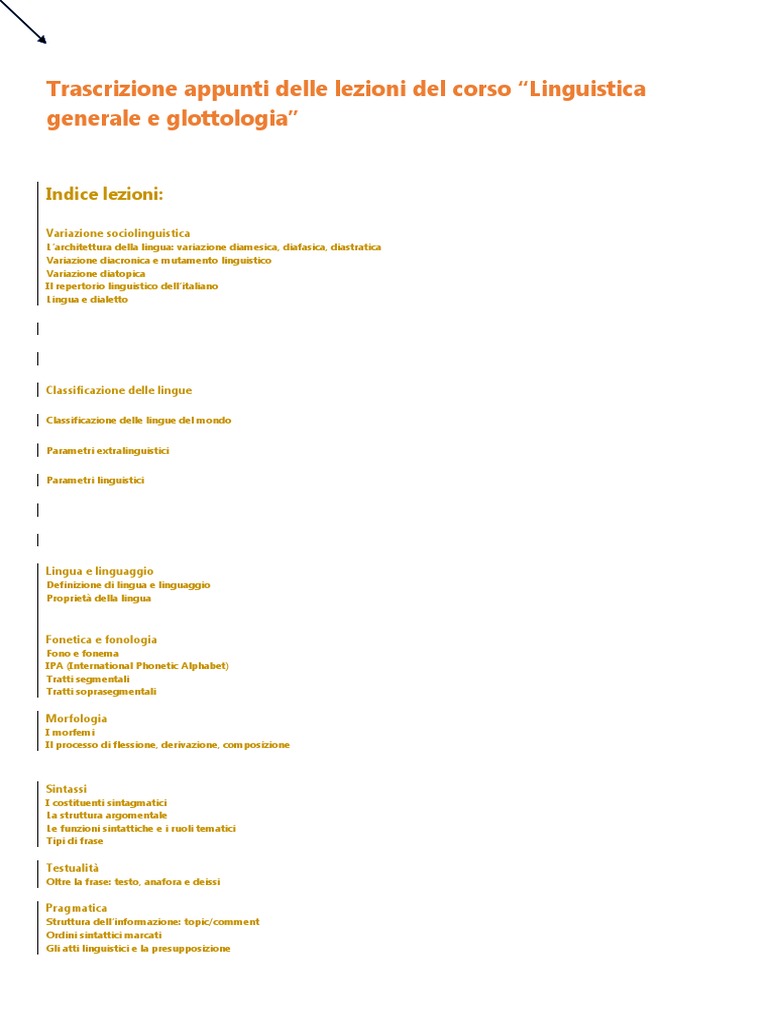 Trascrizione appunti delle lezioni del corso “Linguistica