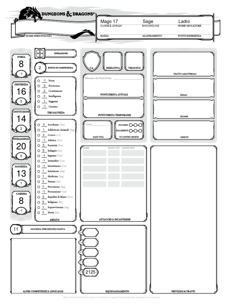NOME PERSONAGGIO RAZZA ALLINEAMENTO PUNTI ESPERIENZA