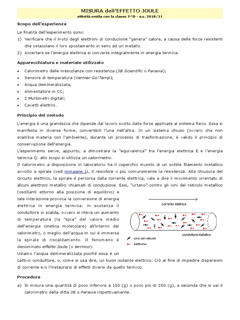 L’esperimento serve, appunto, a dimostrare la ”equivalenza” tra l’energia elettrica E e l’energia
