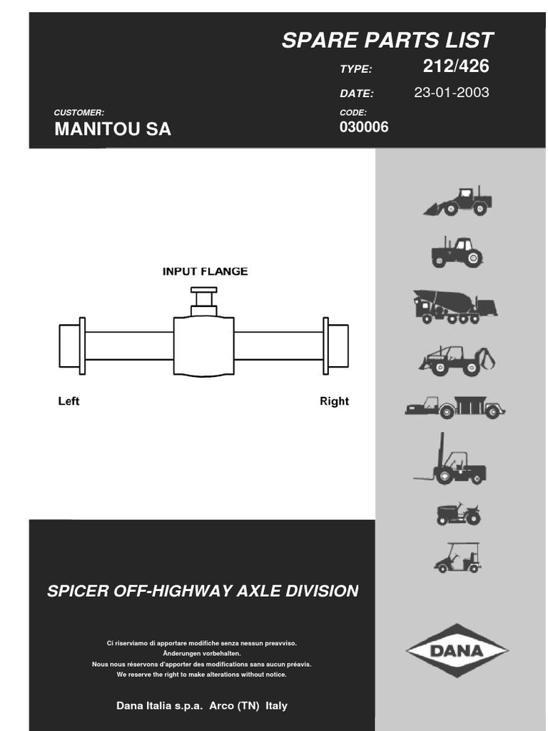 Spare Parts List: Spicer Off-Highway Axle Division
