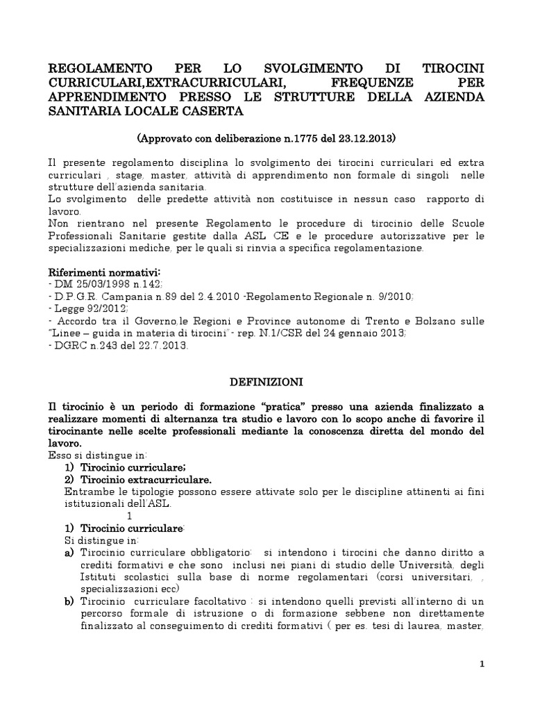“Linee – guida in materia di tirocini”- rep. N.1/CSR del 24 gennaio 2013;