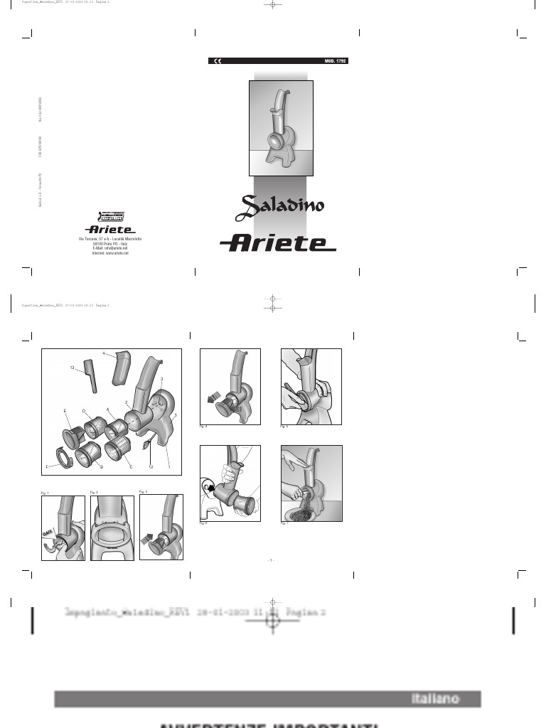 • Non utilizzare l’apparechio per tritare alimenti aventi una eccessiva consistenza, (per esempio