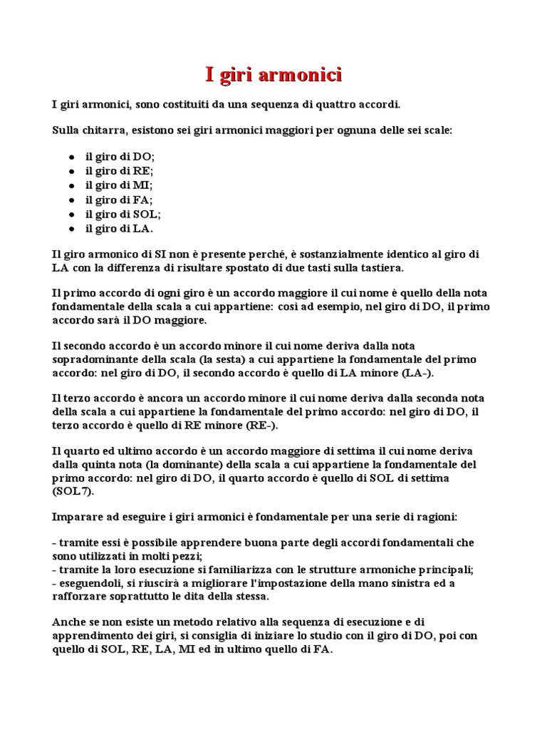 apprendimento dei giri, si consiglia di iniziare lo studio con il giro di DO, poi con