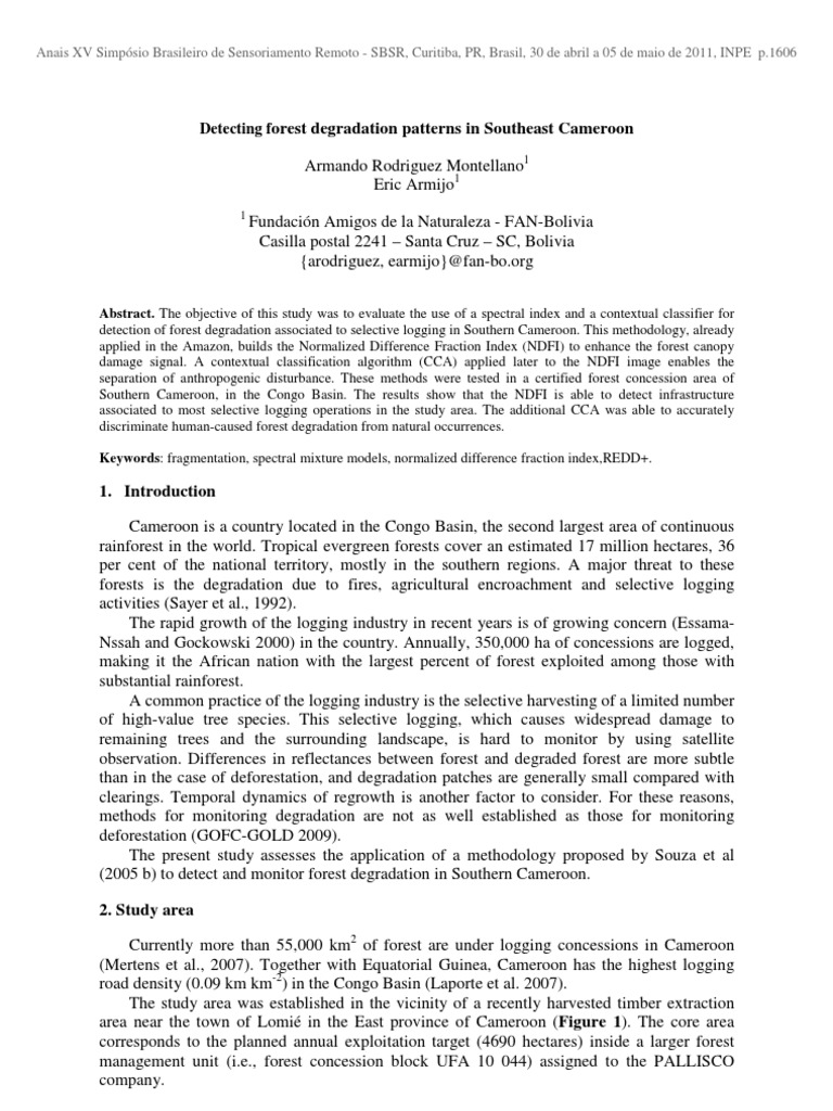 detection of forest degradation associated to selective logging in Southern Cameroon. This methodology, already
