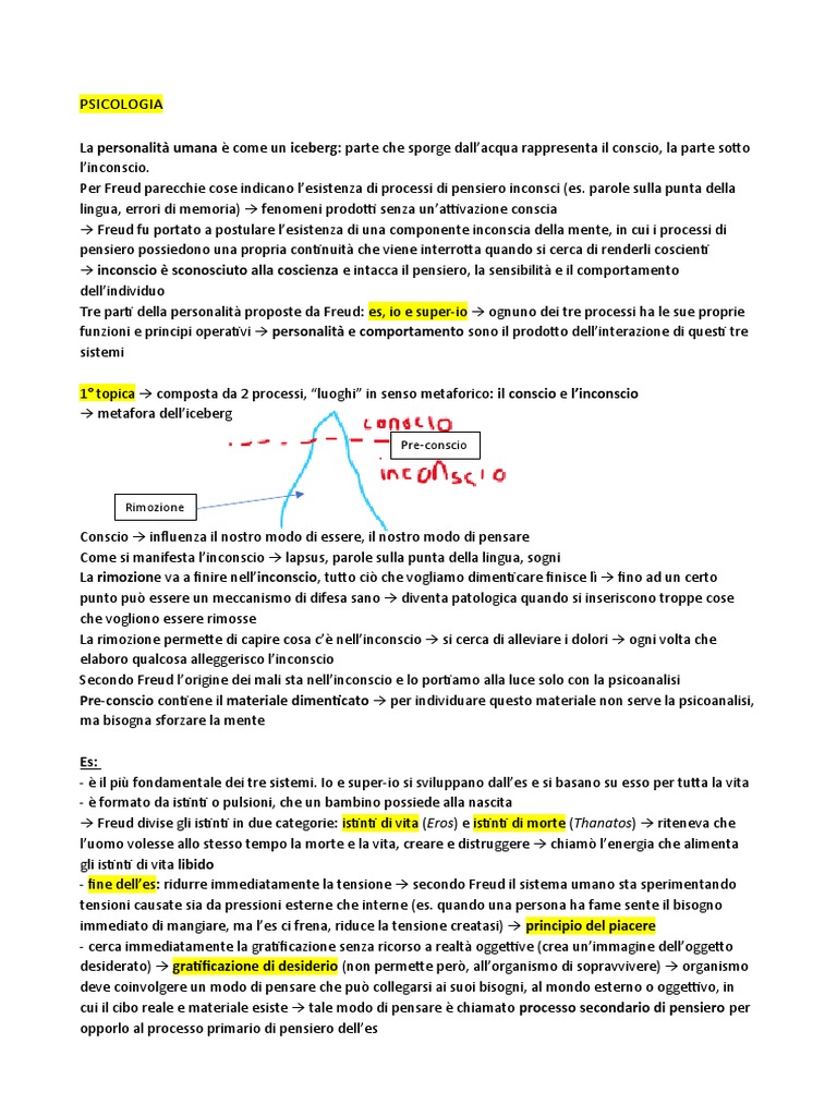 La rimozione va a finire nell’inconscio, tutto ciò che vogliamo dimenticare finisce lì → fino ad un certo