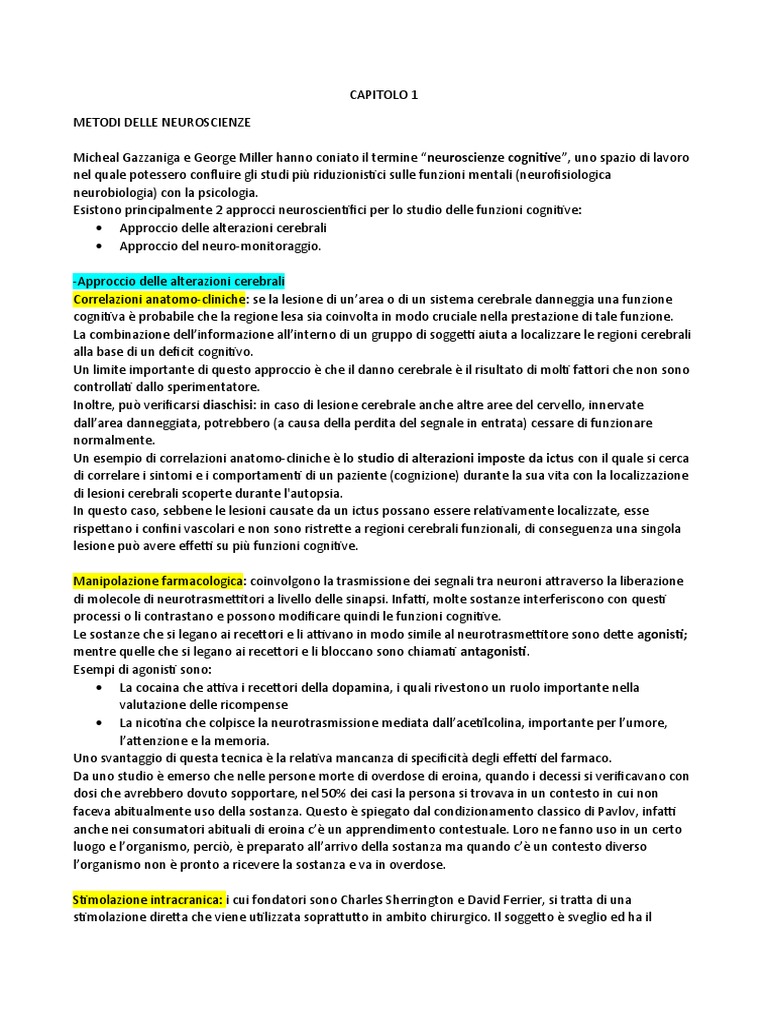Esistono principalmente 2 approcci neuroscientifici per lo studio delle funzioni cognitive: