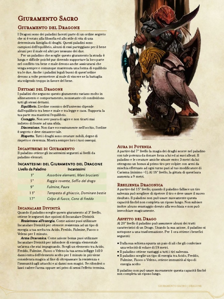 Il paladino ottiene gli incantesimi seguenti ai livelli da A partire dal 7° livello la magia dei draghi scorre nel paladino