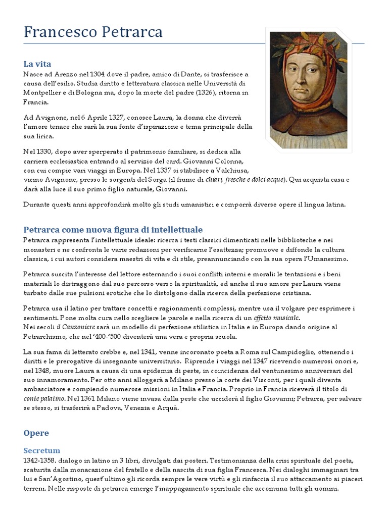 classica, i cui autori considera maestri di vita e di stile, preannunciando con la sua opera l’Umanesimo.