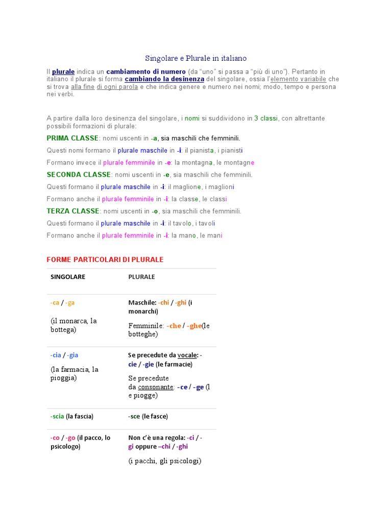 Singolare e Plurale in italiano