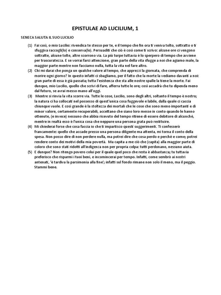 (1) Fai così, o mio Lucilio: rivendica te stesso per te, e il tempo che fin ora ti veniva tolto, sottratto o ti