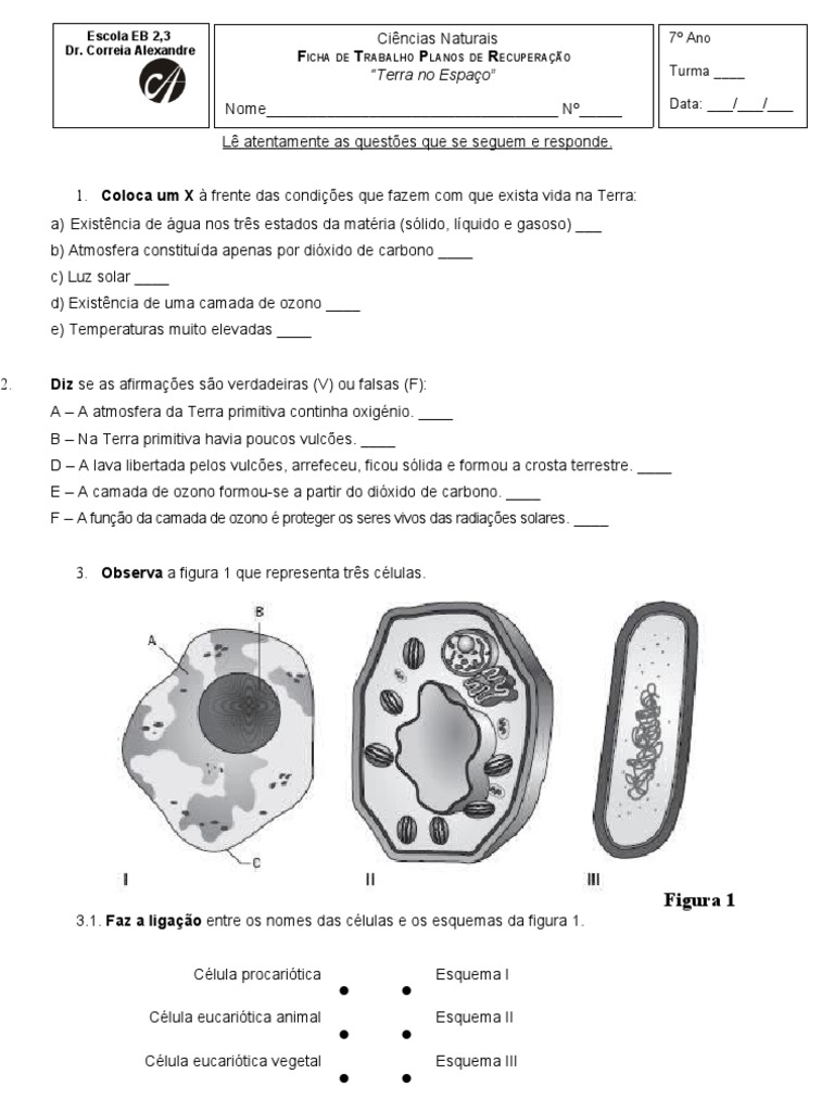 3.1. Faz a ligação entre os nomes das células e os esquemas da figura 1.