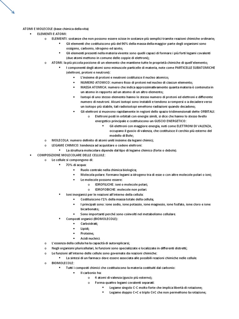 COMPOSIZIONE MOLECOLARE DELLE CELLULE: