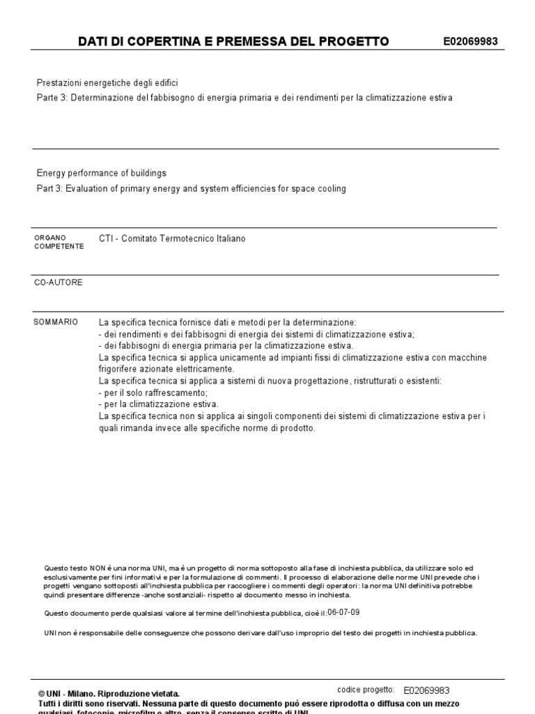 Questo testo NON è una norma UNI, ma è un progetto di norma sottoposto alla fase di inchiesta pubblica, da utilizzare solo ed