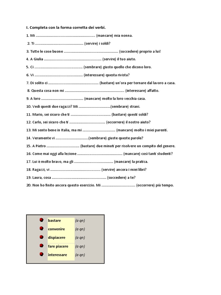 20. Non ho finito ancora questo esercizio. Mi ................................. (occorrere) più tempo.