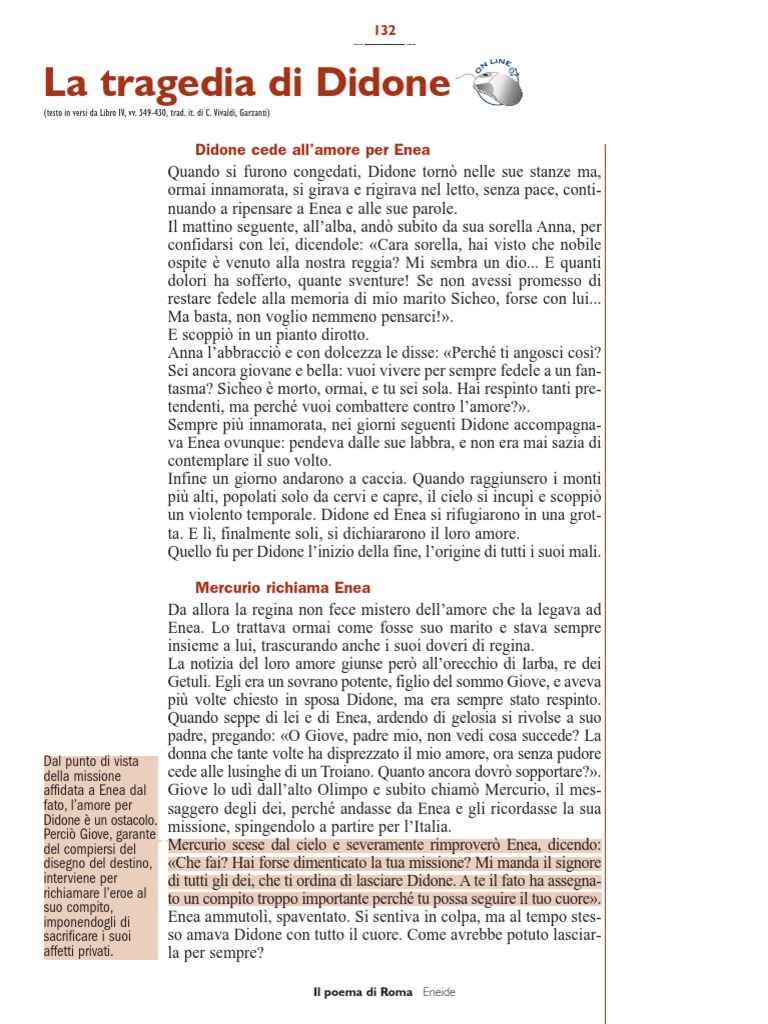 spiegare in Poi, finalmente sola, si trafigge con la spada che Enea le aveva espressioni che
