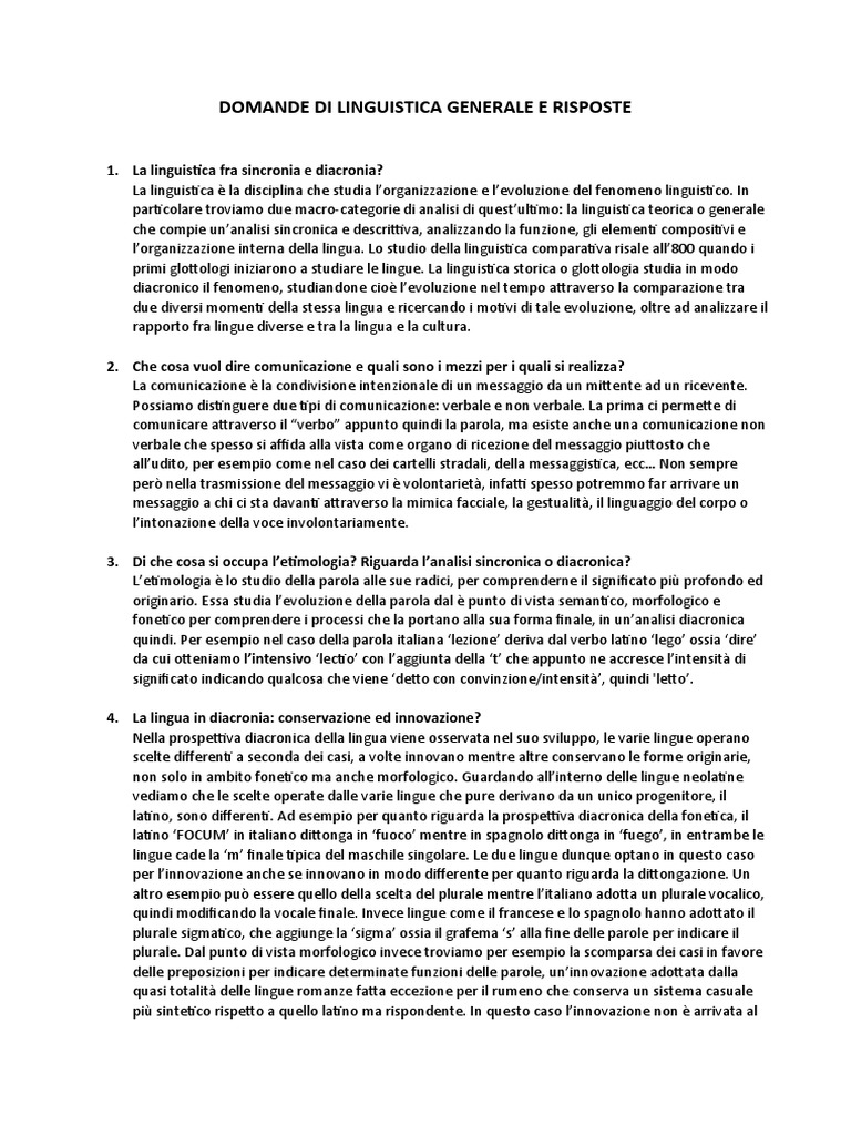 DOMANDE DI LINGUISTICA GENERALE E RISPOSTE