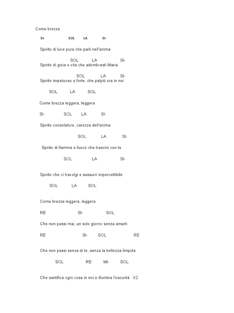 Dacci d’ ascoltare te il tuo respiro dentro noi