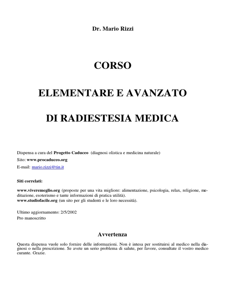 CORSO ELEMENTARE DI RADIESTESIA....................................................................................................................................... 2