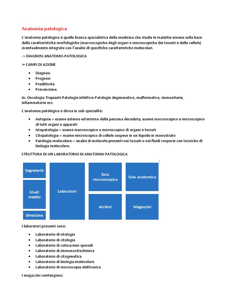 L’anatomia patologica è quella branca specialistica della medicina che studia le malattie umane sulla base