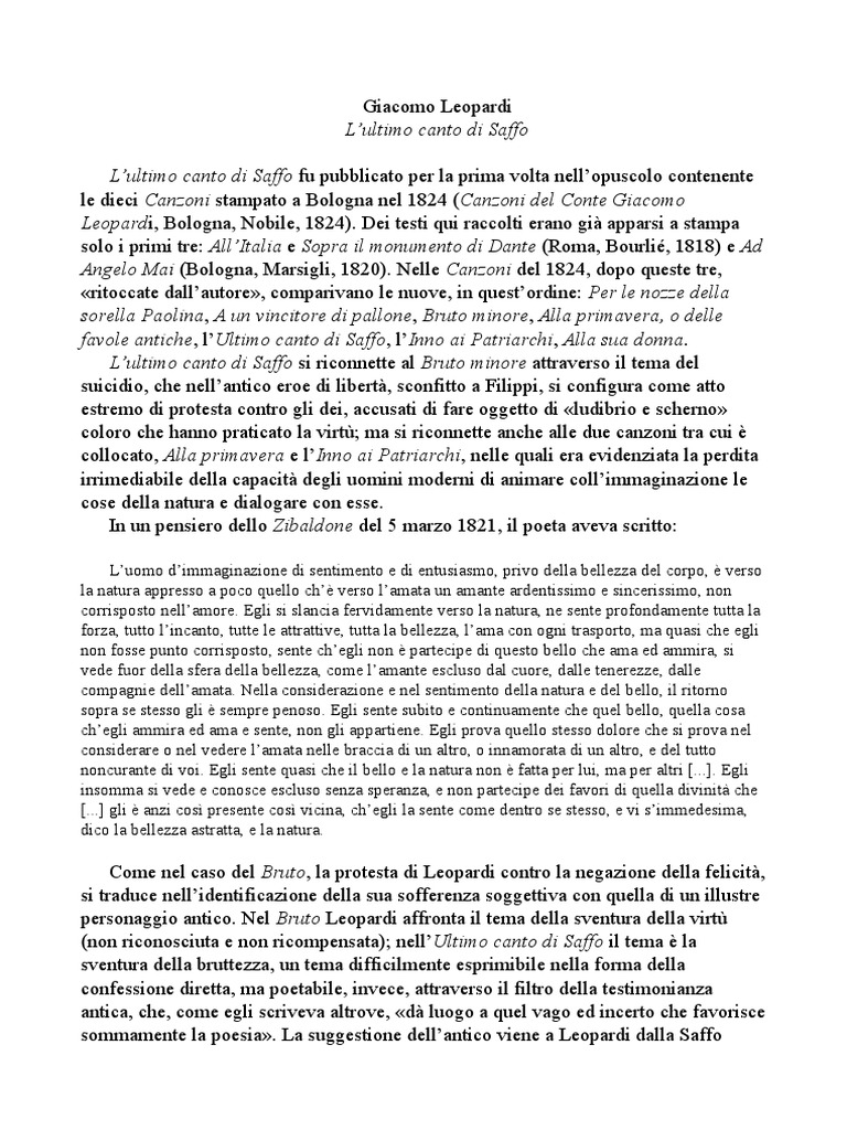 L’ultimo canto di Saffo si riconnette al Bruto minore attraverso il tema del