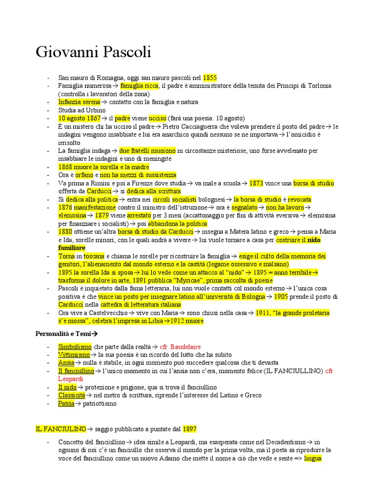 - 10 agosto 1867 il padre viene ucciso (farà una poesia: 10 agosto)