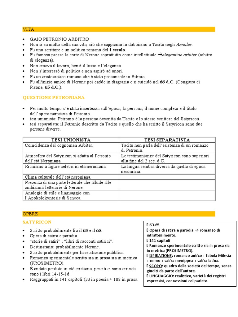Atmosfera del Satyricon si adatta al Petronio Le testimonianze del Satyricon sono superiori