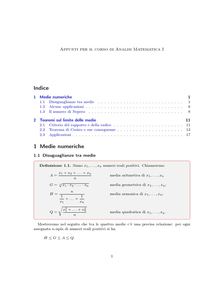 1.1 Disuguaglianze tra medie . . . . . . . . . . . . . . . . . . . . . . . . . . . 1