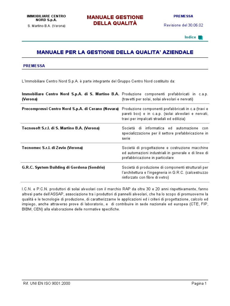 Il presente Manuale della Qualità nella attuale Revisione 30.06.2002, è composto da 46 pagine