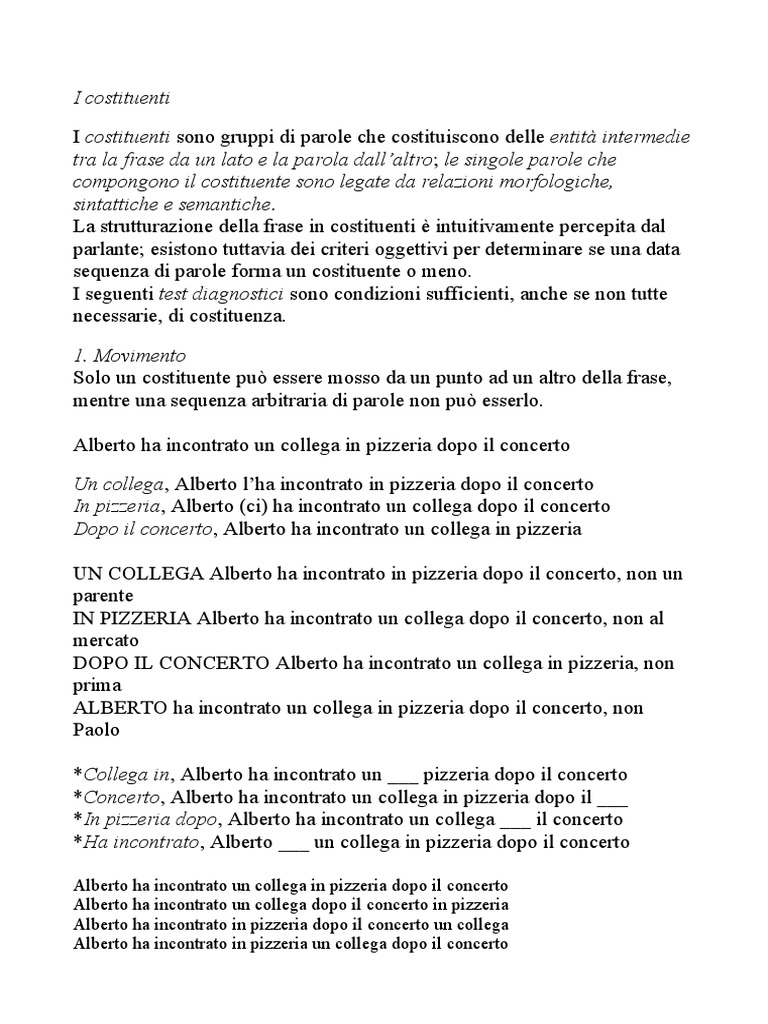 scomposti in altri costituenti, fino ad arrivare alle singole parole); le frasi