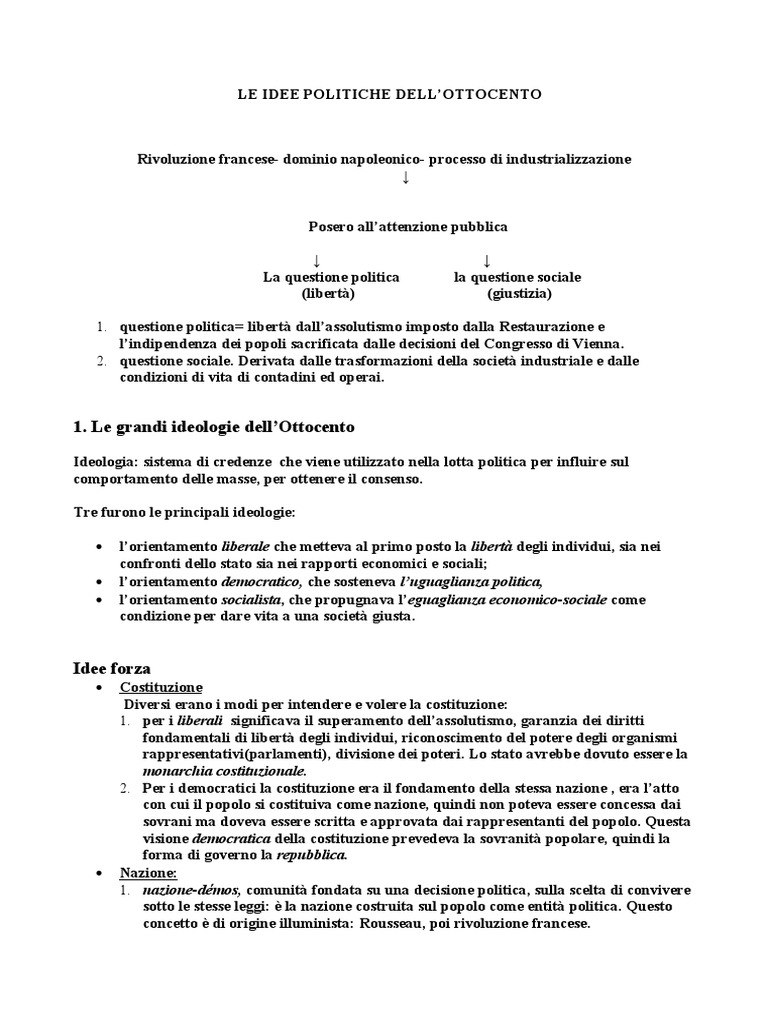 1. questione politica= libertà dall’assolutismo imposto dalla Restaurazione e