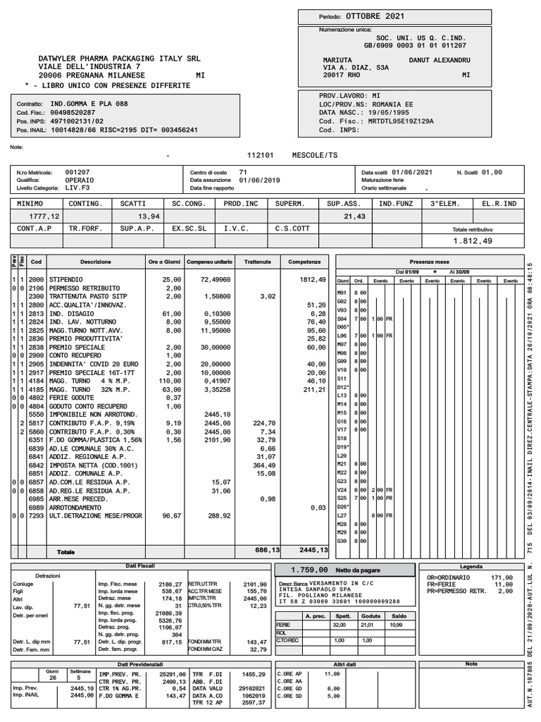 DATWYLER PHARMA PACKAGING ITALY SRL MARIUTA DANUT ALEXANDRU
