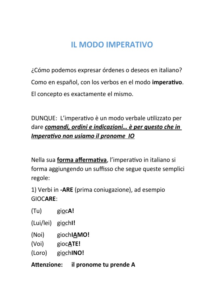 DUNQUE: L’imperativo è un modo verbale utilizzato per