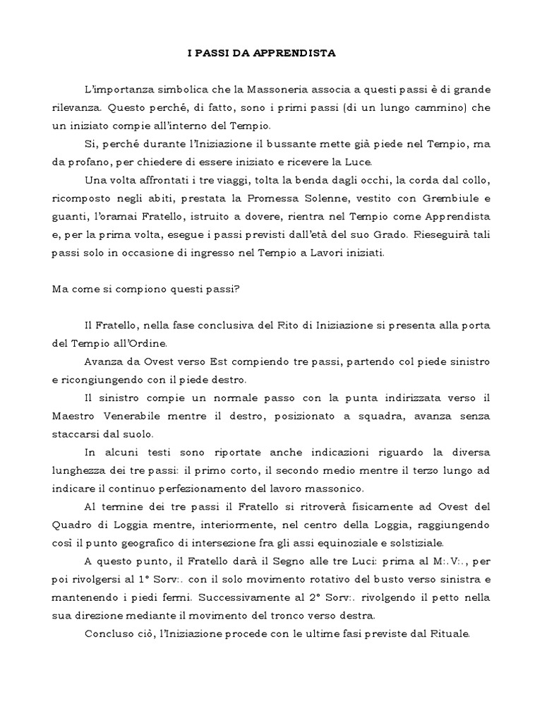 L’importanza simbolica che la Massoneria associa a questi passi è di grande