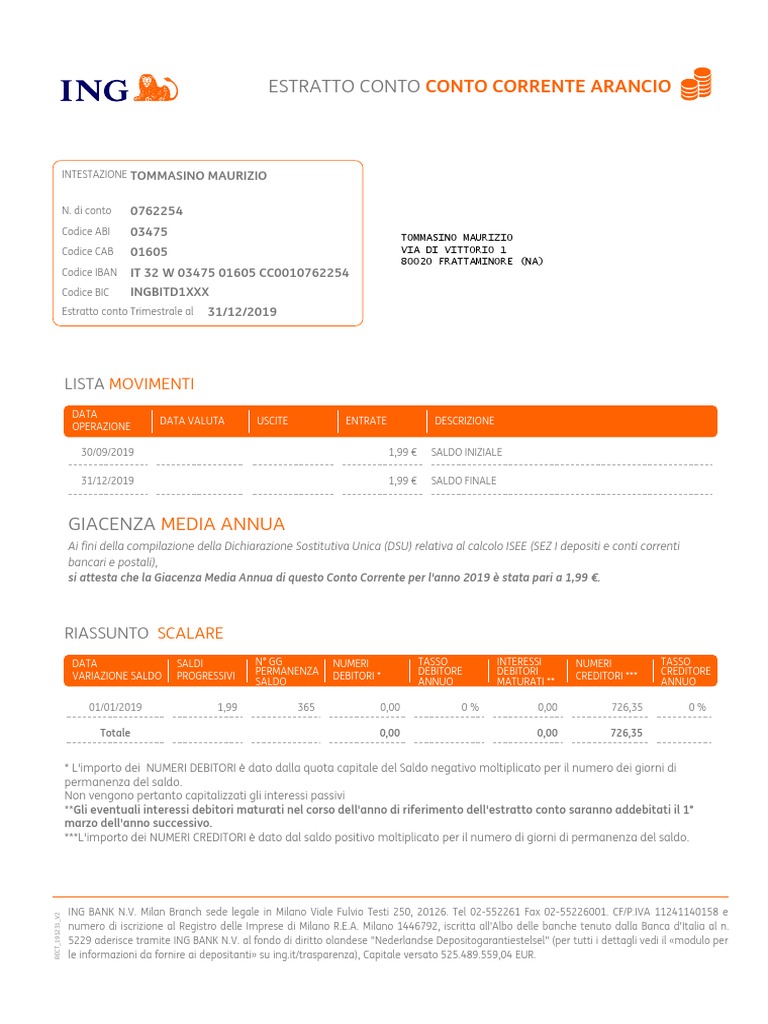 ING BANK N.V. Milan Branch sede legale in Milano Viale Fulvio Testi 250, 20126. Tel 02-552261 Fax 02-55226001. CF/[Link] 11241140158 e