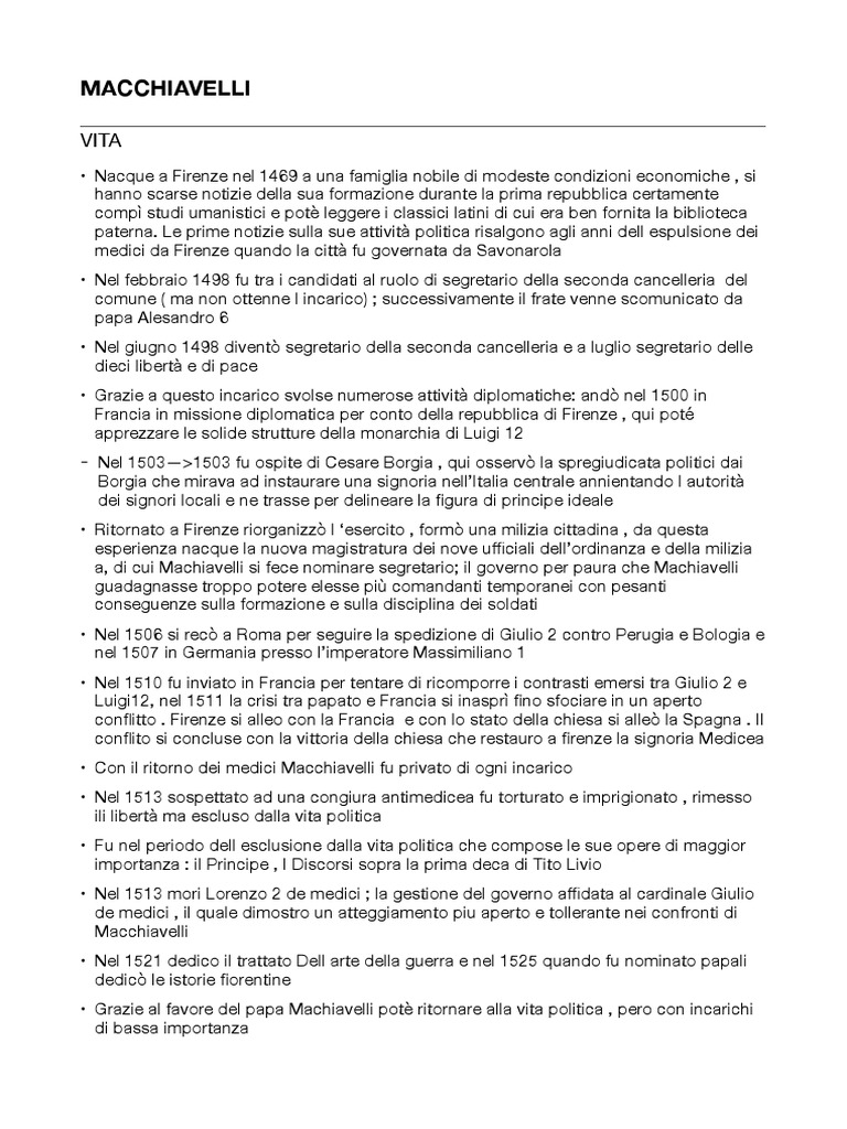 del 1513 ( subito dopo l allontanamento dal politica ) Macchiavelli scrisse i primi dieci