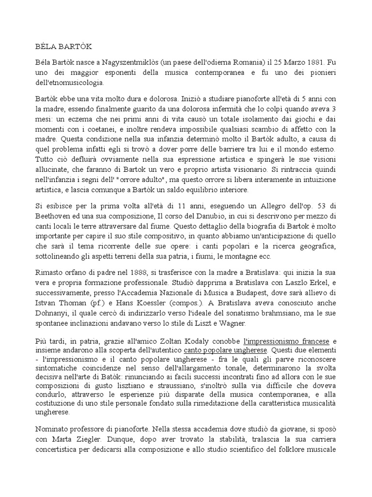 madre. Questa condizione nella sua infanzia determinò molto il Bartòk adulto, a causa di