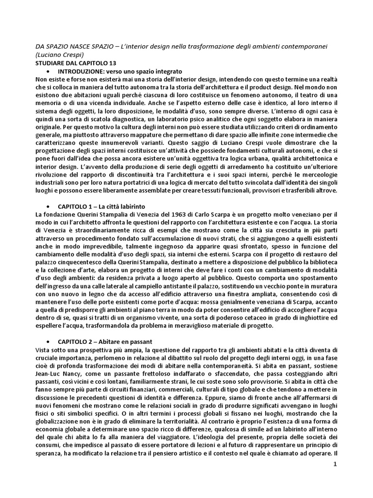 cruciale importanza, perlomeno in relazione al dibattito sul ruolo del progetto degli interni oggi, in una fase