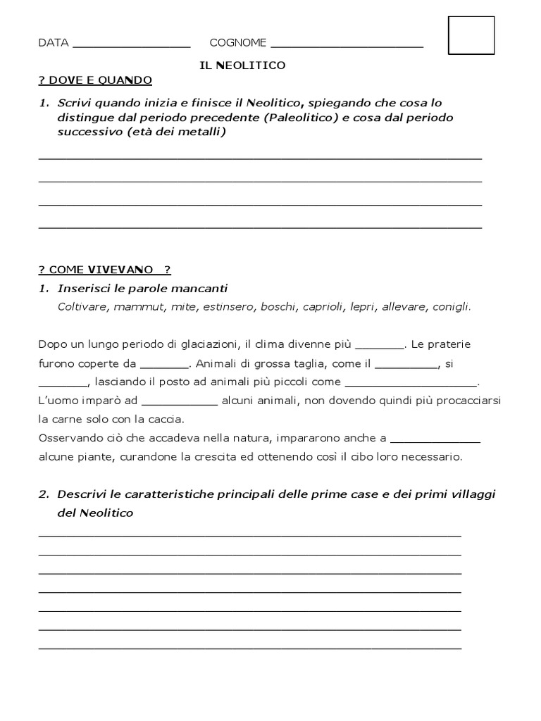 1. Scrivi quando inizia e finisce il Neolitico, spiegando che cosa lo