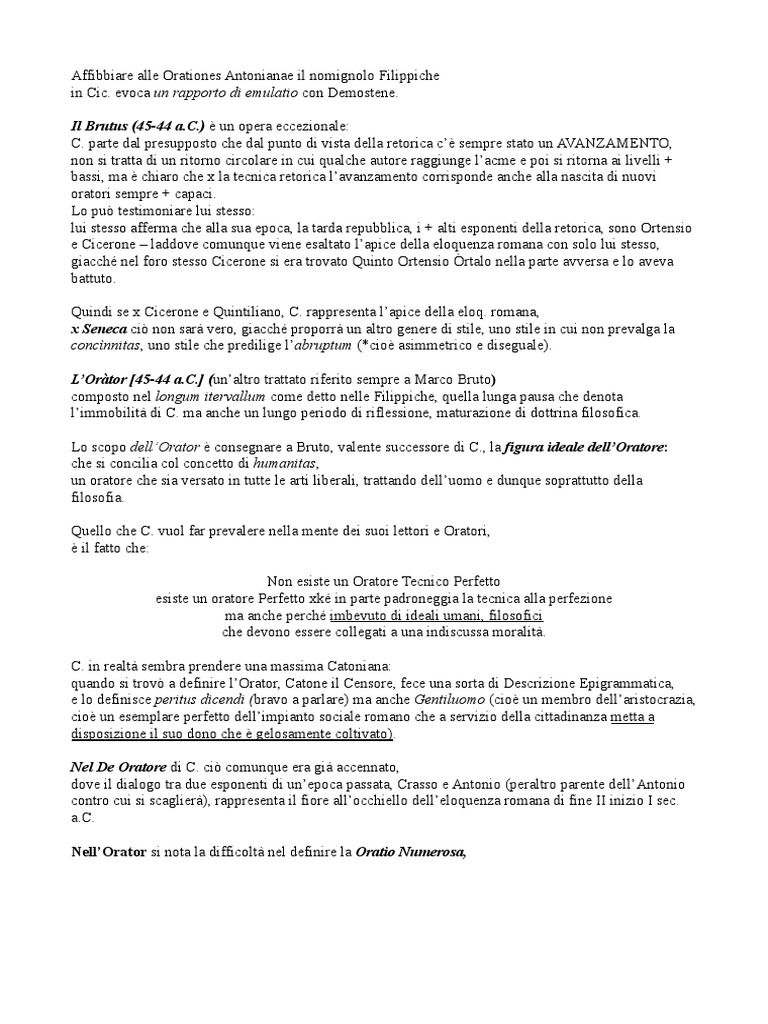 poco dopo la metà dell’Orator; in quanto da qui in poi, C. si preoccuperà di spiegare il concetto di